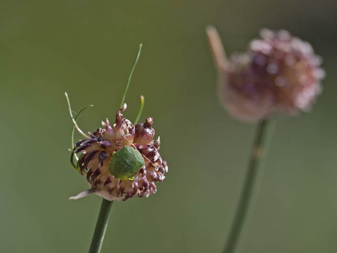 grüne Stinkwanze auf Lauch (Allium sp.) |