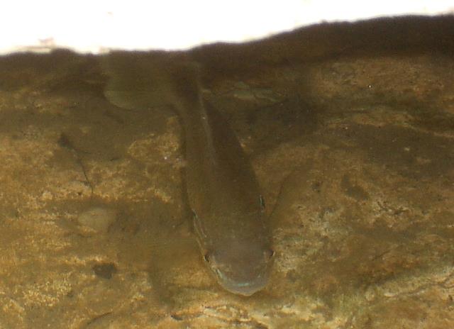 kleine braune Fische, die am Boden gründeln: Gründlinge? ...mehr über den Fluss → Granzon im Ardèche-Gebiet |