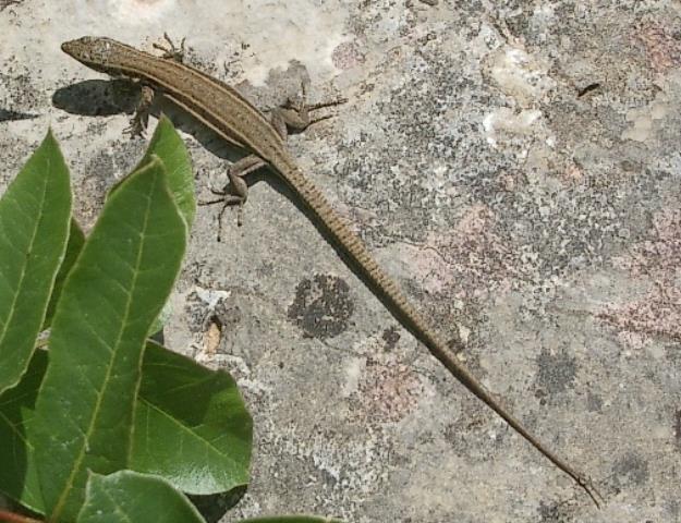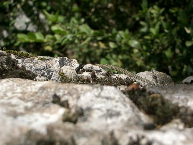 im Felsenchaos: sie winkt kräftig und übertrieben mit den Armen un lézard vert dans le chaos rocheux elle agite vigoureusement et exagérée par les pauvres ...mehr über das → Jontetal in den Cevennen |