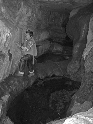 | Die Höhle mit der Fledermaus zu Beginn des Biberhabitats | in der Fledermaushöhle | Fledermaus s. Säuger-am-Chassezac |