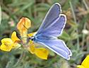 ziemlich sicher Hauhechel-Bläuling (Polyommatus icarus) Azuré de la Bugrane (Danke an Stephan Gehrlein für den Hinweis zur Artbestimmung in 1/2013) auf Hornklee auf Hornklee → Wildblumen im Ardèchegebiet |