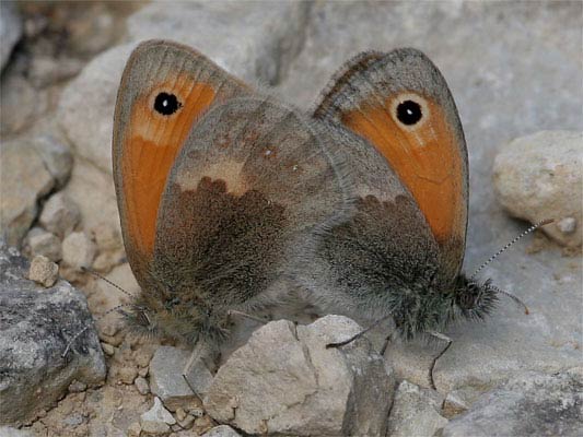 Hochzeit vom kleinen Wiesenvögelchen (Coenonympha pamphilus) s. Falter-am-Chassezac |