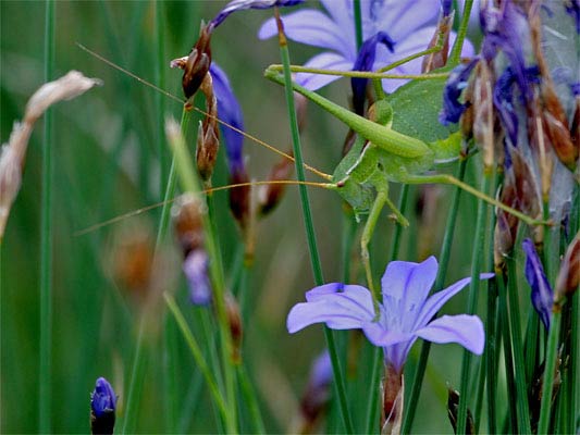 | punktierte Zartschrecke (Leptophyes punctatissima) ohne Flügel → Larve mehr über Schrecken-im-Ardèchegebiet L´Aphyllanthe de Montpellier ou œillet bleu de Montpellier (Aphyllanthes monspeliensis) Ordre Liliales, Famille: Liliaceae (Danke an Susanne H. für die Artbestimmung) → Wildblumen im Ardèchegebiet |