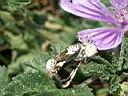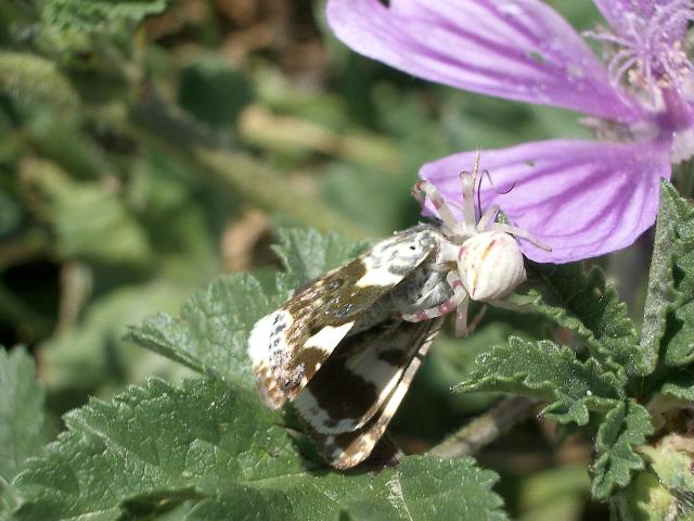 sensationell gut getarnte veränderliche Krabbenspinne (misumena vatia) hat einen Schmetterling erbeutet mehr über Spinnenarten-im-Ardèchegebiet in einer Malve (Malva) les mauves « véritables » (Danke an Susanne für die Hilfe bei der Artbestimmung) → Wildblumen im Ardèchegebiet |