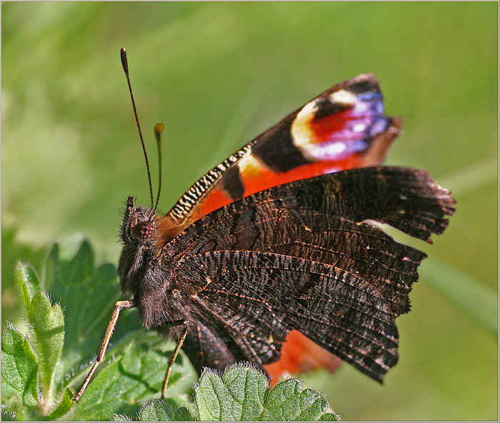 Dieses Tagpfauenauge ist ziemlich zersaust.