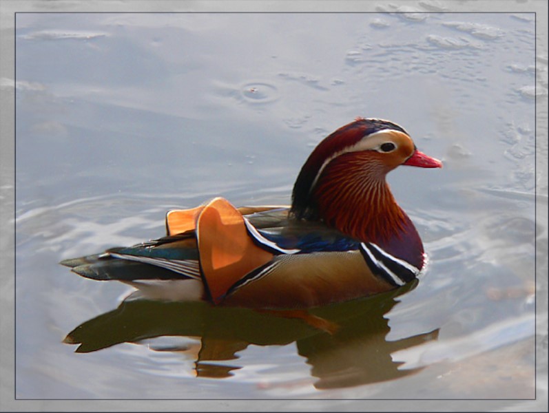 Mandarinente am Eisrand