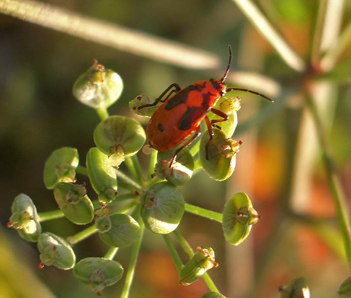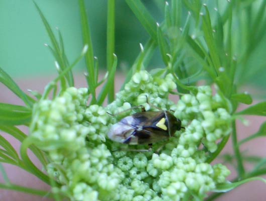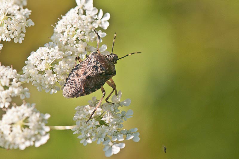 Wiesen-Bärenklau (Heracleum sphondylium) in einem Garten im Gagerbach und eine Gartenwanze (Rhaphigaster nebulosa) ...mehr über unsere → Wanzen im Glemstal → Gagerbach in Schwieberd. |