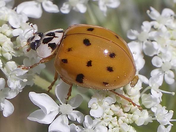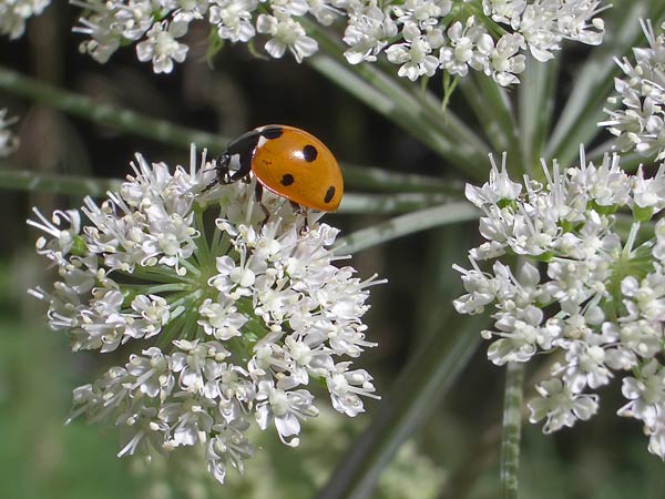 ein Marienkäfer: Siebenpunkt ( Coccinella septempunctata) auf Wald-Engelwurz (Angelica sylvestris) ...mehr über unsere → Käfer im Glemstal |