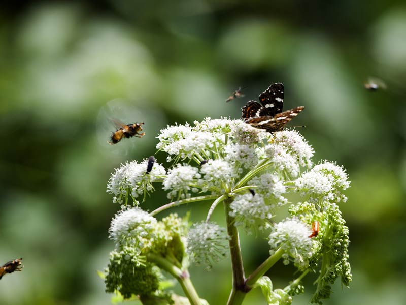 intensiver Flugbetrieb Wald-Engelwurz (Angelica sylvestris) ...mehr über unsere → Schwebfliegen im Glemstal |