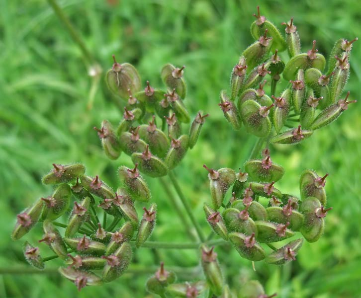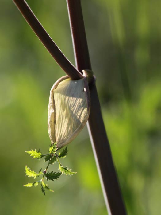 grünen Zweige kommen auch aus der Kapsel heraus: Wald-Engelwurz (Angelica sylvestris) |