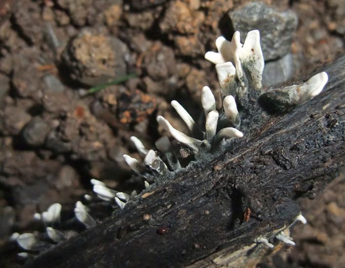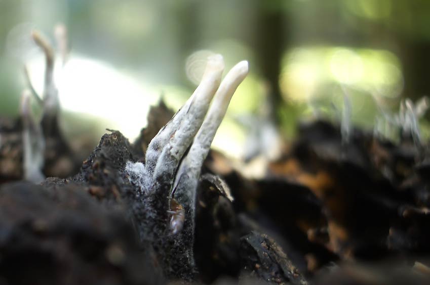 "Ziegenbärtchen" nennt Fritz Plachetta solche Pilze: Geweihförmige Holzkeule (Xylaria hypoxylon) (Danke an Rotraut Völlm für die Artbestimmung in 11/2012) Ordnung: Holzkeulenartige (Xylariales) |