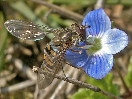 Persischer Ehrenpreis (Veronica persica) mit Hain-Schwebfliege (episyrphus balteatus) |