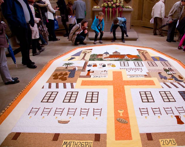 In der Georgskirche gibt es seit einigen Jahren im Herbst Erntedankmosaike. Unglaublich filigran.