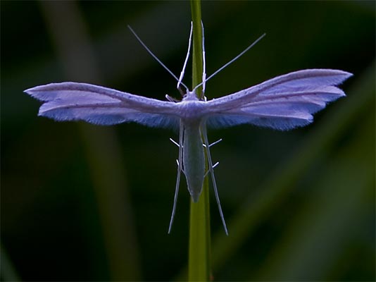 Mehr über unsere Federmotten (Pterophoridae) im Glemstal (aufs Foto klicken): ...mehr [Foto: Federgeistchen Pterophorus pentadactylus in Schwieberdingen an der Neumühle, 1.8.2005]