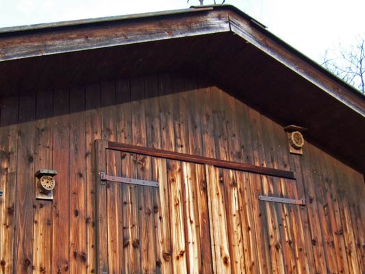 Holz kleine Stahleinsätze vor die Röhrchen um den Specht abzuhalten.