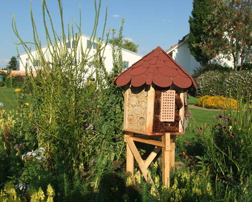 Naturfreundehaus auch ein kleines Wildbienenhotel in einem Schwegler-Kasten