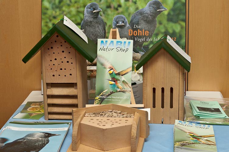 kleine Ausstellung von Wildbienenhotels bei der JHV vom NABU Schwieberdingen-Hemmingen |
