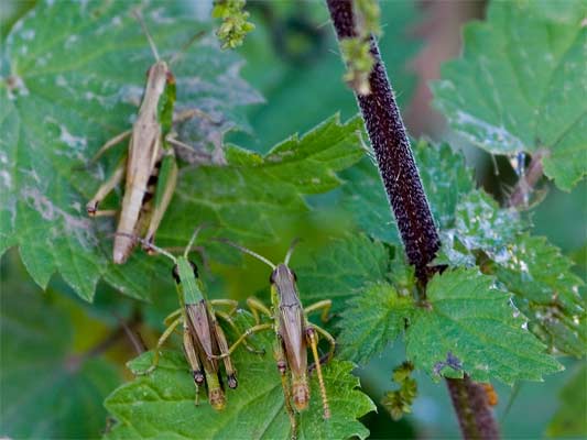auf der Feuchtwiese ist die Heuschreckendichte sehr hoch. |