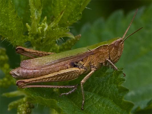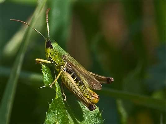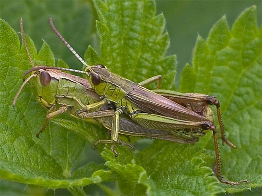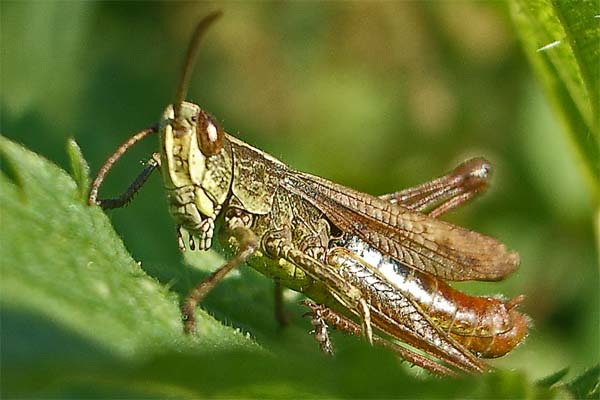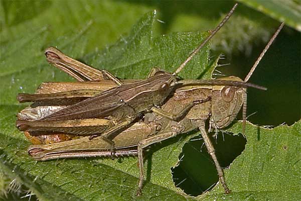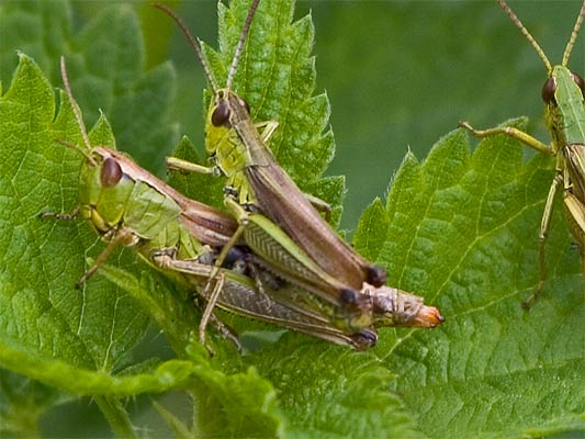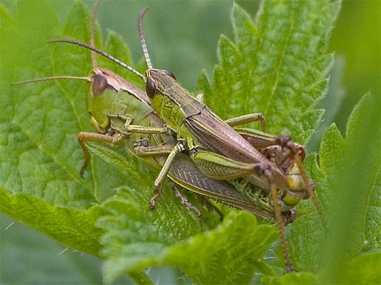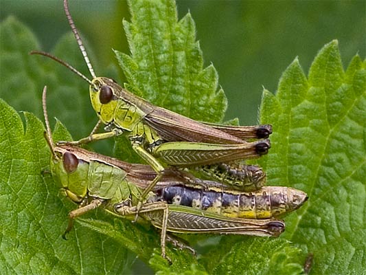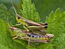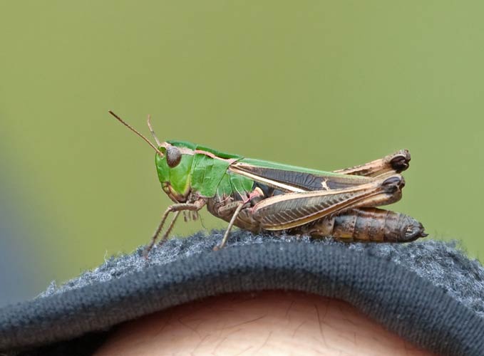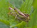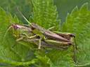 beim Drücken. Wiesen-Grashüpfer? |