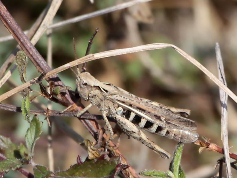 Ödlandschrecken außerhalb des Glemstals: Links weit weg auf