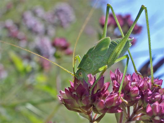 Wie immer ist die Langfühlerschrecke unten rechts kein Warzenbeißer.