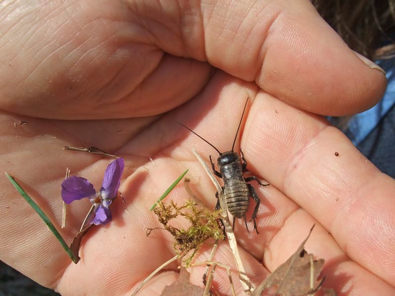 Feldgrille (Gryllus campestris) vor Ihrer Höhle unter einem Stein in der Enzianwiese.. Im nächsten Frühjahr wird sie sich zur Imago mit Flügeln entwickeln. ...mehr über unser → Naturdenkmal "Enzianwiese" |