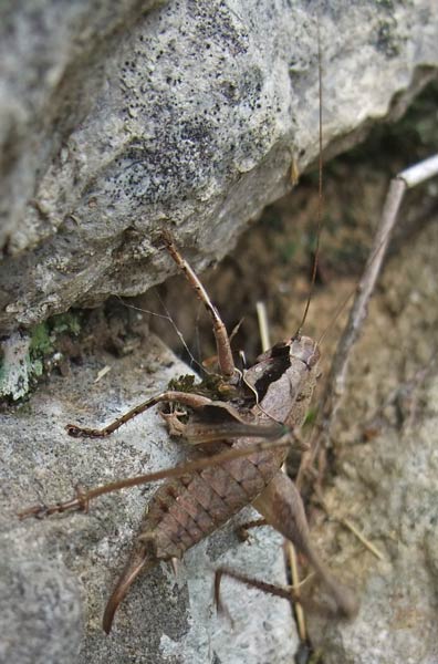Grillenart. An warme Lagen (Weinberge) gebunden. "Singt" sehr laut und schön.