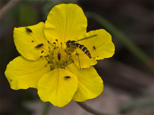 Winter-Schwebfliege (Episyrphus balteatus) auf Gelbes Habichtskraut Hieracium piloselloides ...mehr über unsere →Korbblütengewächse im Glemstal |