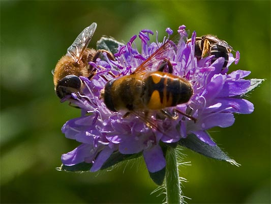 Eristalis Tenax Mistbiene männlich auf Wiesenknautie |