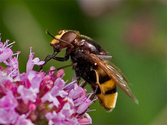 gelbe Hummel-Schwebfliege (Volucella inanis) auf Dost |