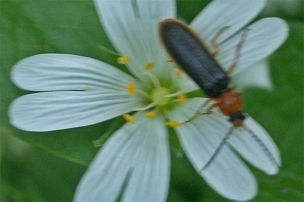 cantharis pellucida Familie Weichkäfer mehr zu Käfer-im-Glemstal auf grosser Sternmiere (stellaria holostea) mehr zu Caryophyllaceae-im-Glemstal |