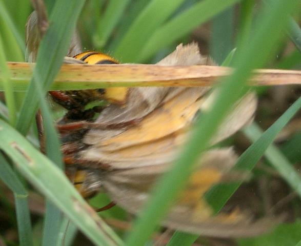 | 21.8.04, 18:30 gr. Wiese Hornisse (vespa crabro) geschützte Art mit Schmetterling als Beute neu → Hornisse im Glemstal |