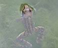 | kleiner Frosch am NABU-Teich im Wasser versteckt |