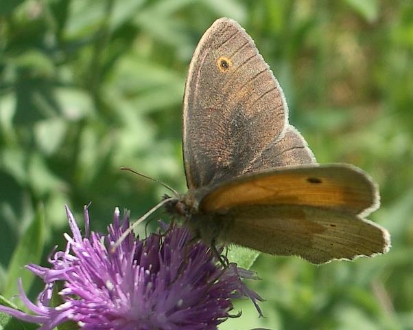 Spinnen | Großes Ochsenauge (maniola jurtina) auf Wiesenflockenblume |