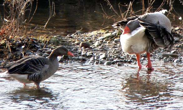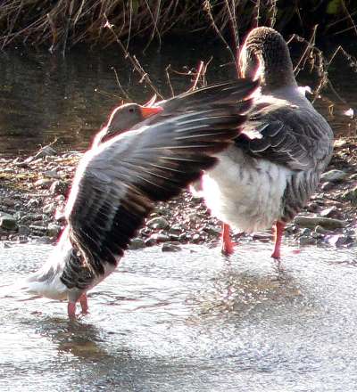 Ich bin mir nicht sicher, ob die 3 Graugänse in der Gänsegruppe am Wehr wirklich