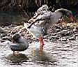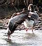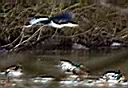 | Reiher beim Abflug unten Stockenten |