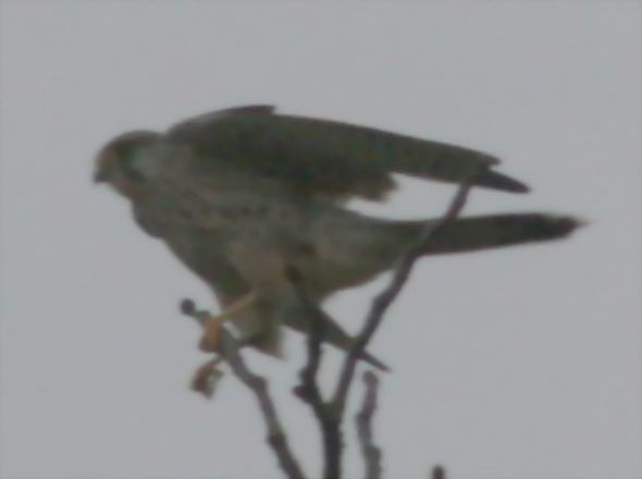 | Technische Analyse: Eine schöne Fotoserie. (Immerhin zu Fuß und in freier Wildbahn ungetarnt aus ca. 20m Entfernung). Der Autofokus ist toll. Fast alle Fotos sind einigermaßen scharf. Der Burstmodus ist Spitze. Fotos in 0,2 sec Abstand erlauben ganz neue Analysen. Das Foto wo er still sitzt ist deutlich schärfer als die anderen. In allen Fällen war aber die Belichtung viel zu kurz. Alle Fotos musste ich stark aufhellen. (Gamma auf 1.95 (!), geschärft 70%). Die Originalfotos sind fast schwarz. Siehe rechts: (Irgendwie ist die Belichtungssteuerung merkwürdig -> Handbuch lesen!). Der Turmfalke hatte übrigens nichts gefangen. 5 Sekunden später ist er wieder hochgeflogen und hat sich wieder hingesetzt. |