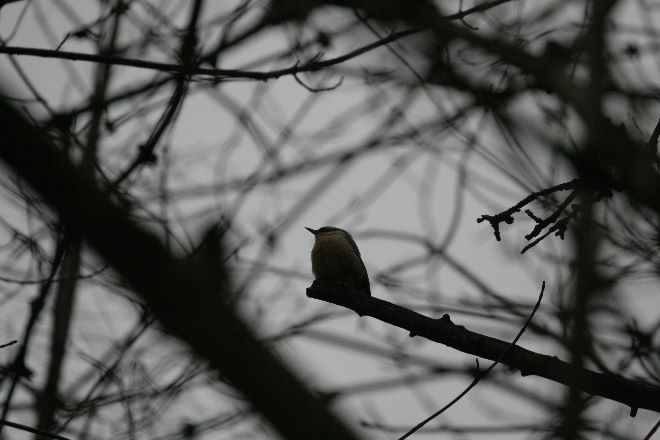 | Kleiber auf Ast ca. 10m entfernt von seiner Höhle | per EBV gezoomt und aufgehellt | fliegt zu seinem Loch Vögel-im-Glemstal |