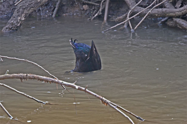 Gegen Abend tauchte nach etwa drei Minuten reglos am Teich stehen
