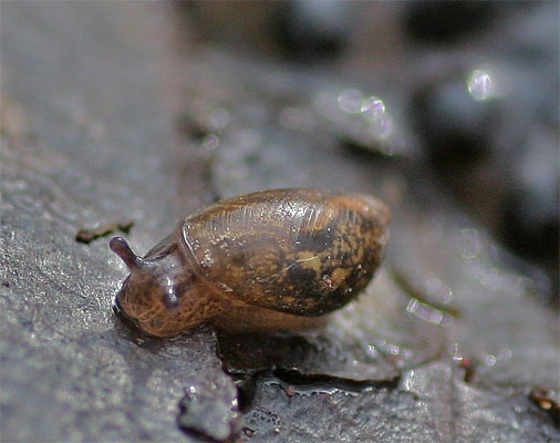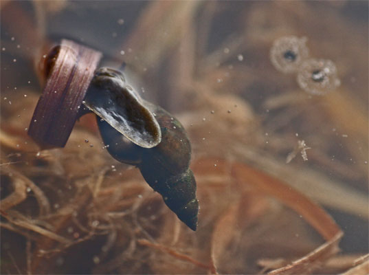 Mini-Bernstein-Schnecke vor Froschlaich → Schnecken-im-Glemstal |