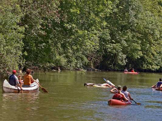 Sehr viele Kajakfahrer sonntags auf der Enz. Fast wie an der Ardèche.