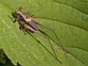 gleiches Tier | gewöhnliche Strauchschrecke Pholidoptera griseoaptera ohne Legeröhre vermutl. männl. |