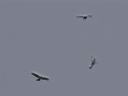 Bei der Flugschule kommt es öfter zu Luftkämpfen der jungen Mäusebussarde untereinander. Ich vermute das ist so wie eine Rauferei unter Geschwistern. Sieht spektakulär aus. Am 22.8 waren 6 Mäusebussarde über Vöhingen. Dort gab es sehr starken Wind. Die Mäusebussarde standen fast auf der Stelle. Bei dieser Trainingsstunde im Starkwindsegeln gabs mal keine Luftkämpfe.