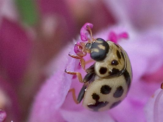 Sechzehnpunkt-Marienkäfer (Tytthaspis sedecimpunctata) auf Dost ... mehr über unsere → Käferarten im Glemstal |