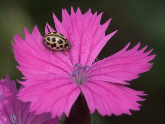 Sechzehnpunkt-Marienkäfer (Tytthaspis sedecimpunctata) ... mehr über unsere → Käferarten im Glemstal auf Karthäuser-Nelke (dianthus carthusianorum) s. Caryophyllaceae-im-Glemstal |