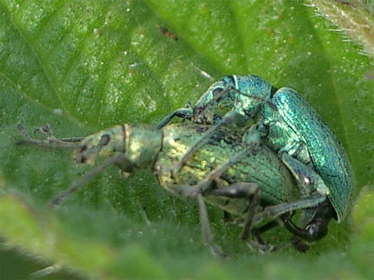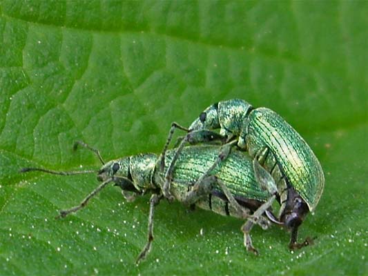 Käferhochzeit Grünrüssler (phyllobius sp.) siehe auch Käfer-im-Glemstal |