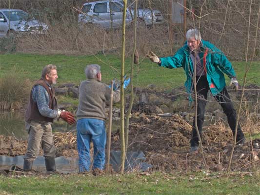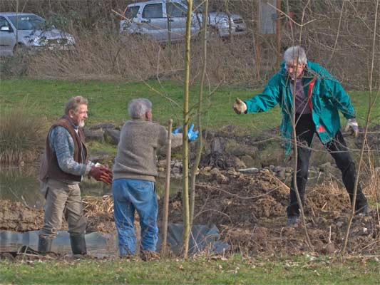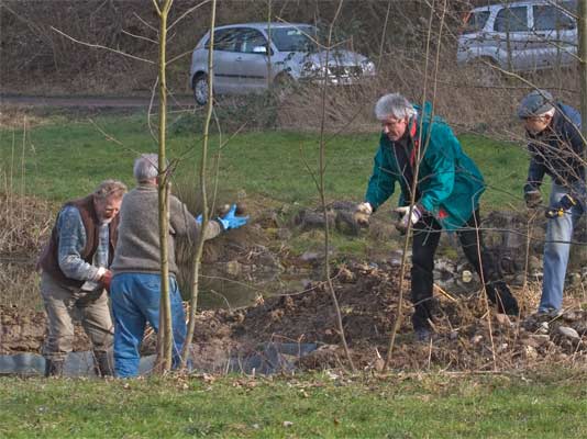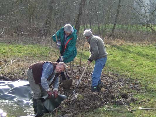 | Der Nebenteich wird neu angelegt | Und mit Wasser gefüllt | dieser Teichmolch wurde umgesetzt in den grossen Teich. → Teichmolch-im-Glemstal |