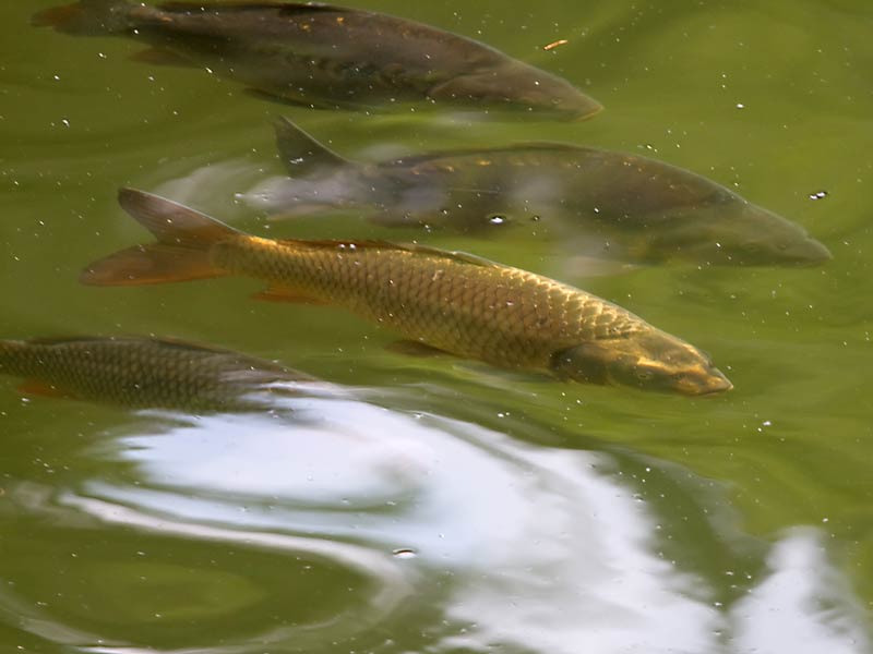 Neuen See. Hinten zwei Karpfen. → Fischarten-in-der-Glems |