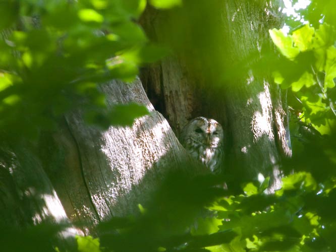 in diesem Baum. Auch wird er gelegentlich mit einem zweiten Waldkauz dort gesichtet. (Honni