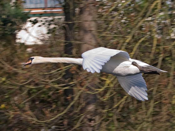 Höckerschwan (cygnus olor) fliegt über der Enz |